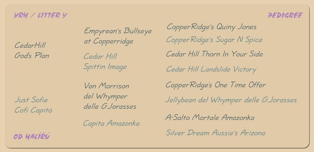 Maminkou je naše úžasná Jenny, otce jsme vybrali velice pečlivě, aby splňoval všechny naše požadavky. Níže najdete vypsaná všechna lékařská vyšetření, výstavní úspěchy a složené zkoušky rodičů našich štěňátek.